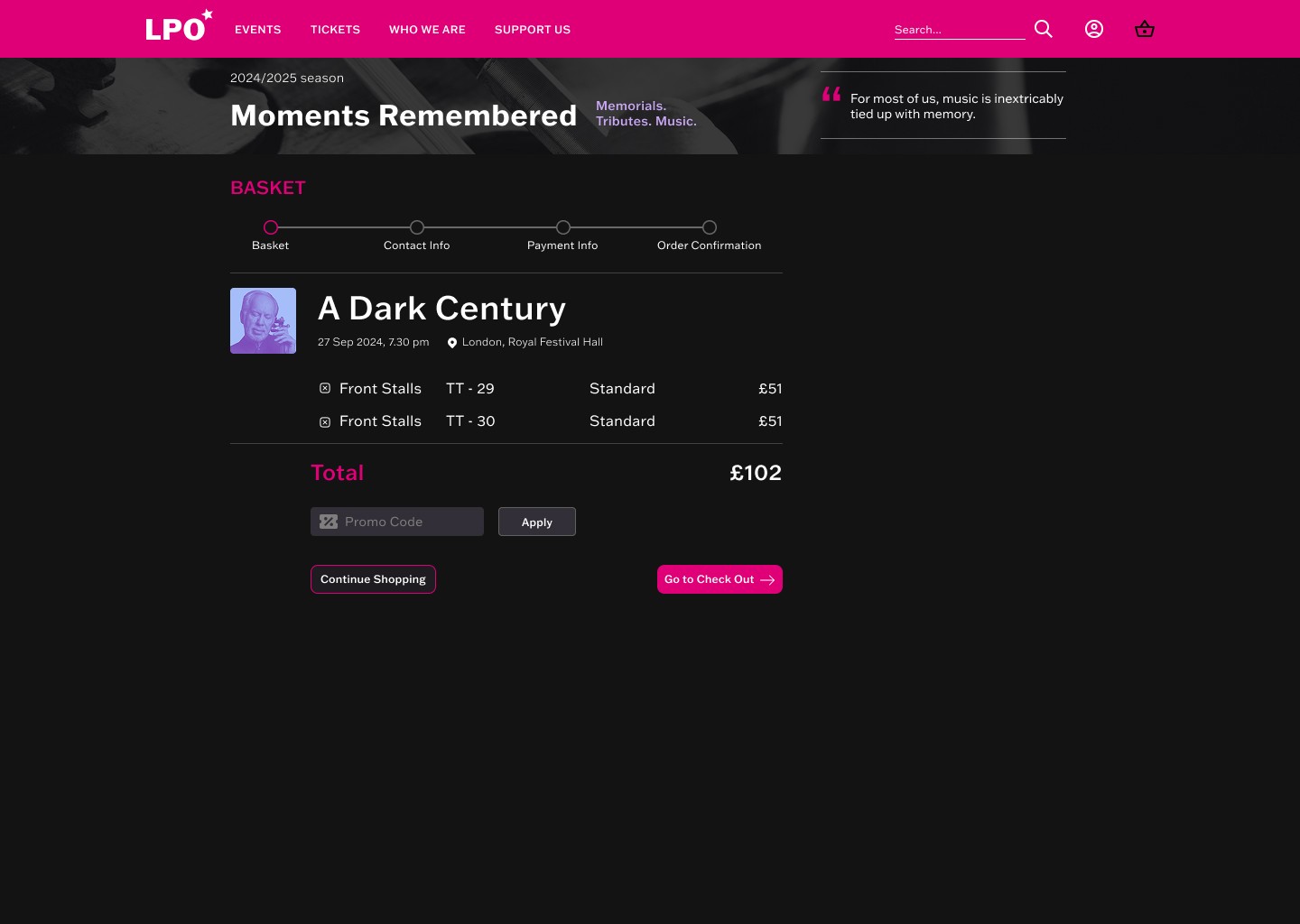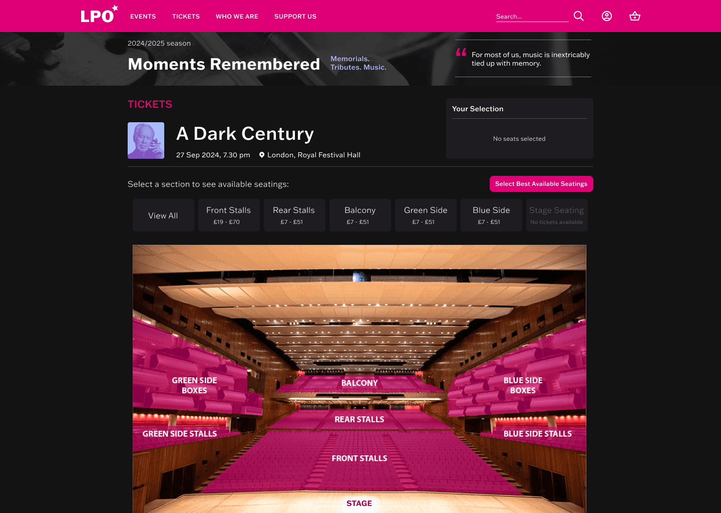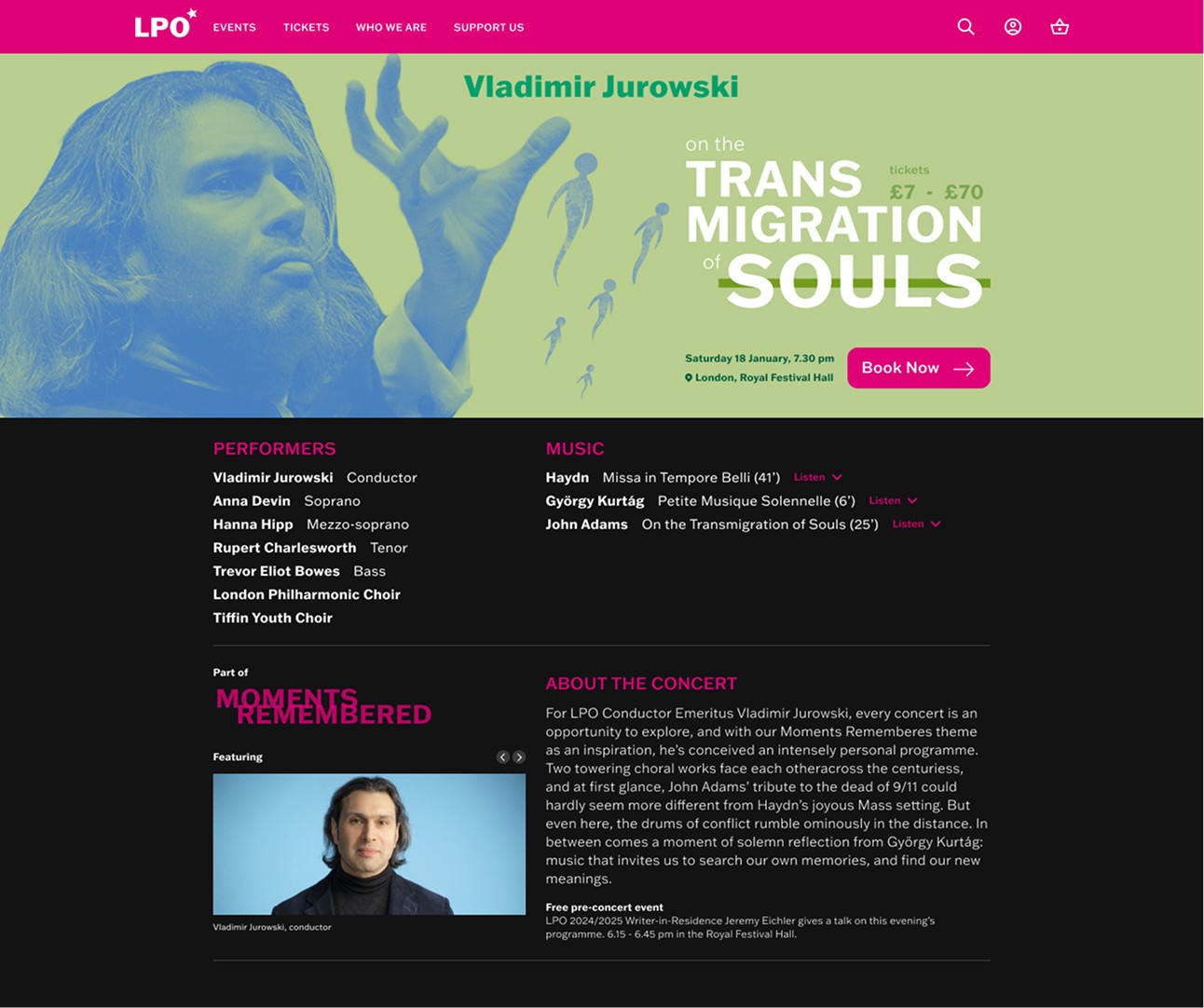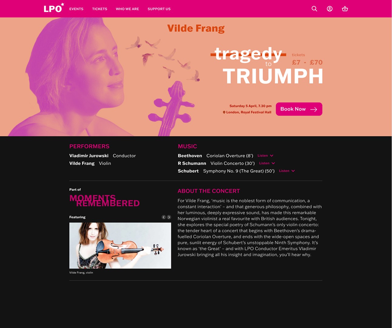 Multiplatform campaign for the London Philharmonic Orchestra’s Moments Remembered concerts, including posters, digital campaigns, and a website.